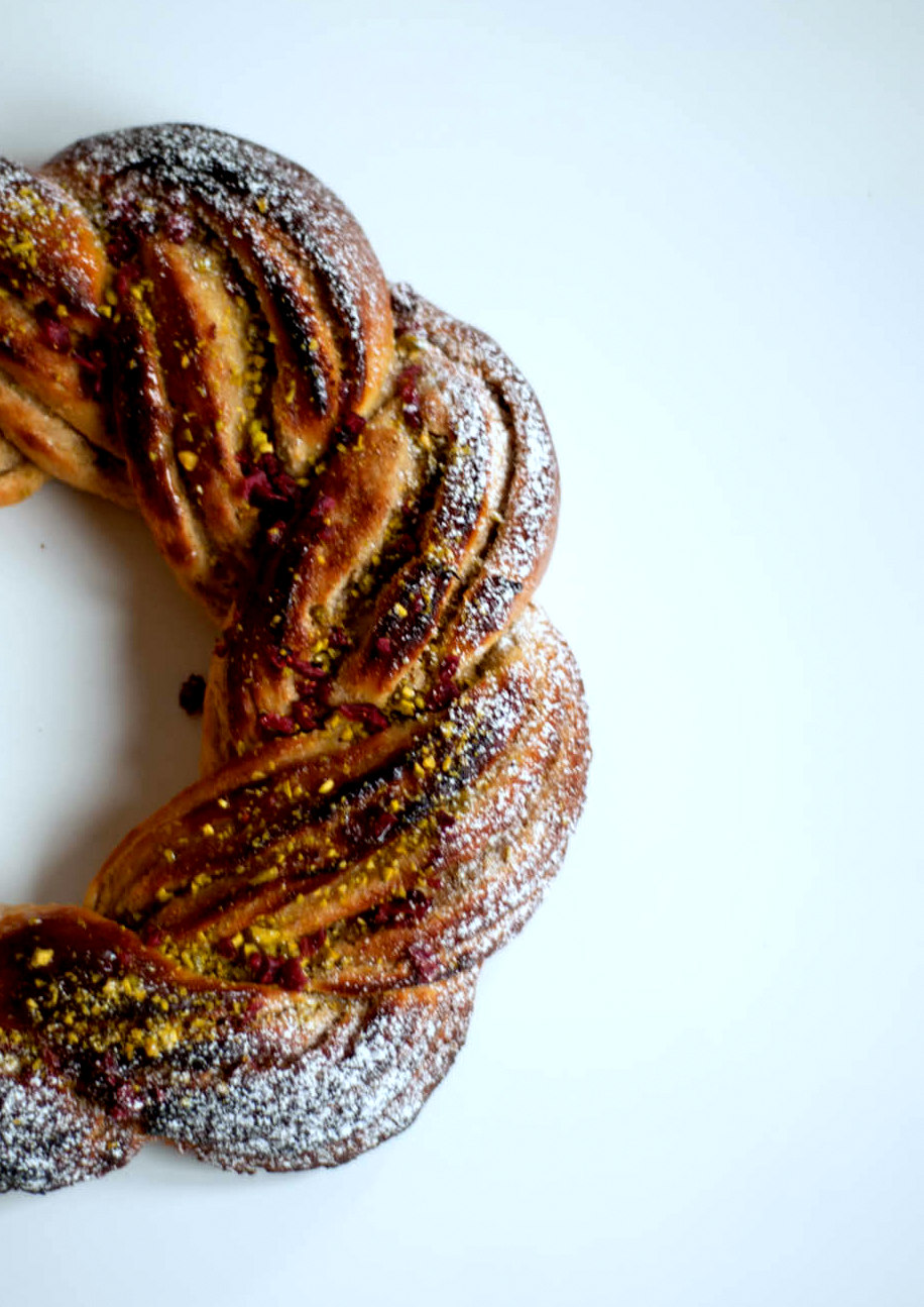 Coroa de Pistacho com Recheio de Amêndoas e Água de Rosas